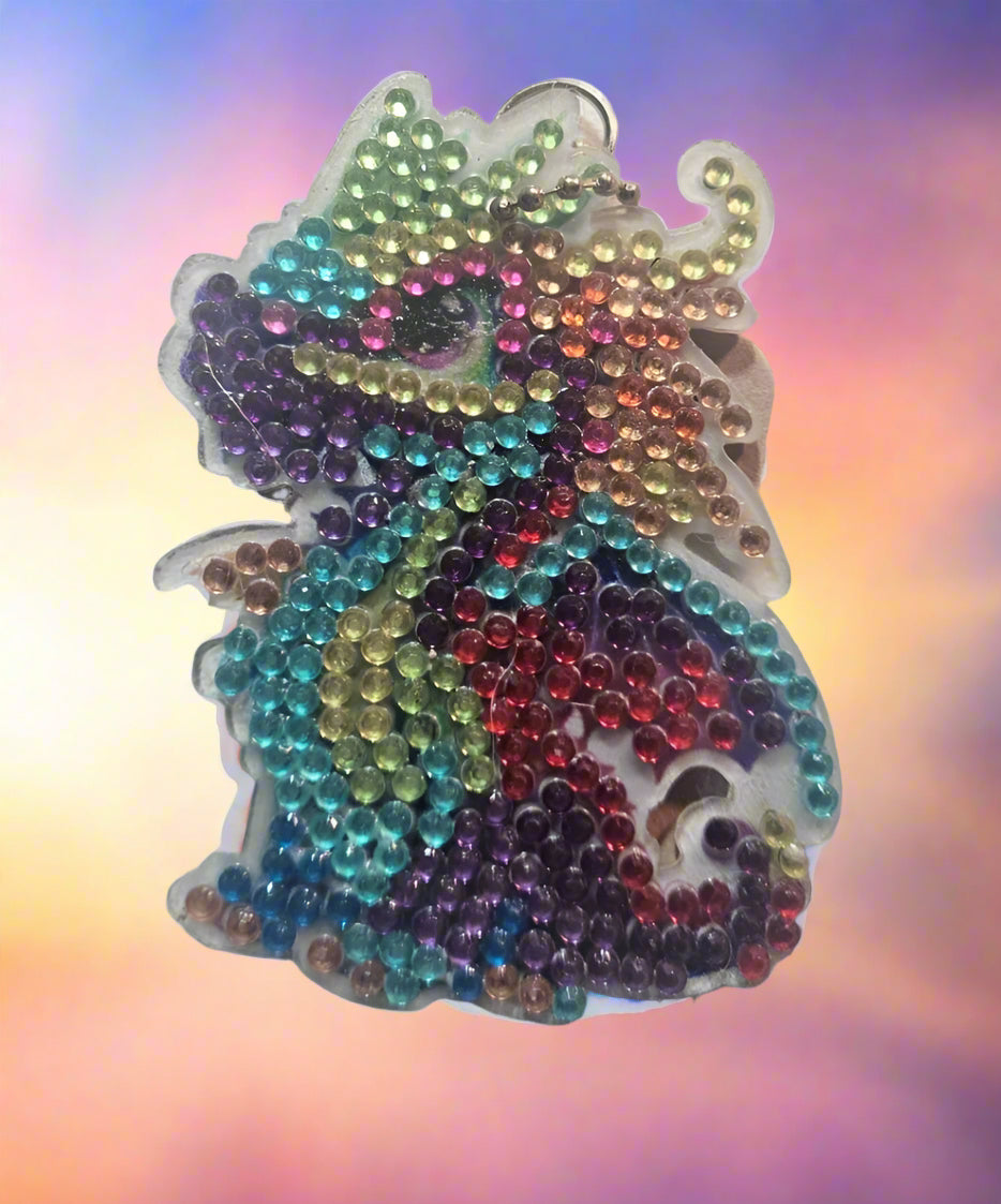 This Baby Dragon double-sided diamond art keychain and ornament showcases intricate detail on both sides, offering a charming, durable accessory. Crafted with precision, it adds a whimsical touch to your keys or decor while ensuring lasting shine and resilience. Ideal for collectors and enthusiasts seeking a unique, eye-catching piece.