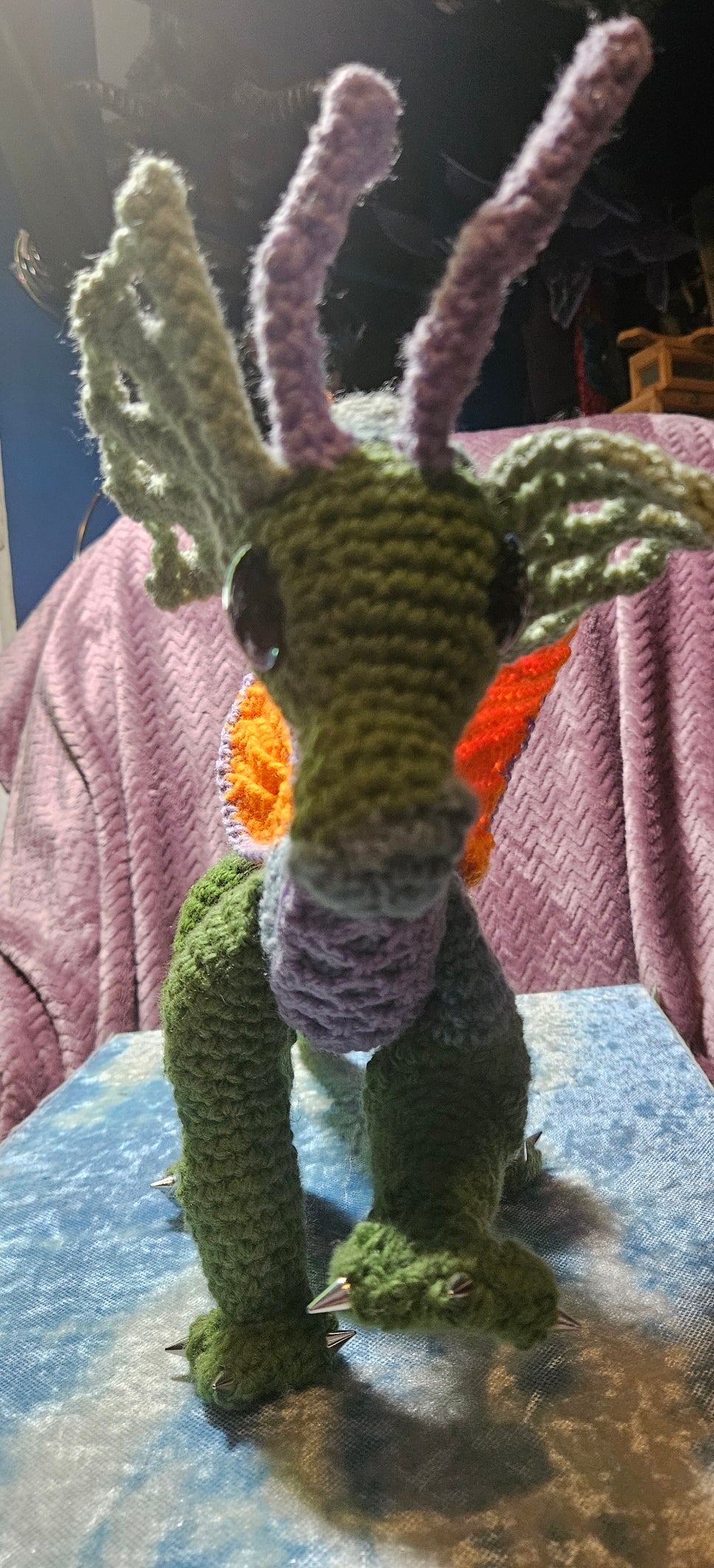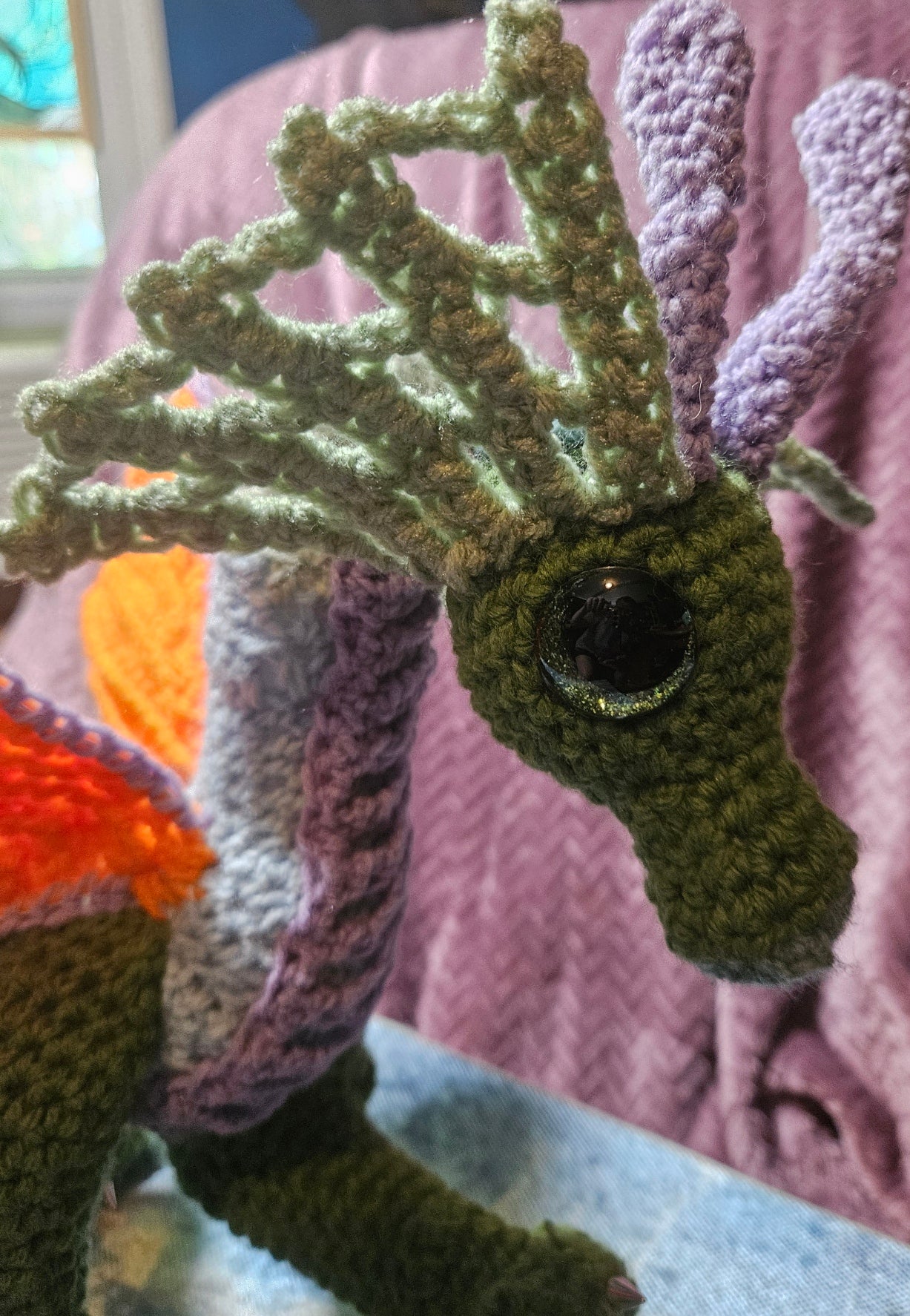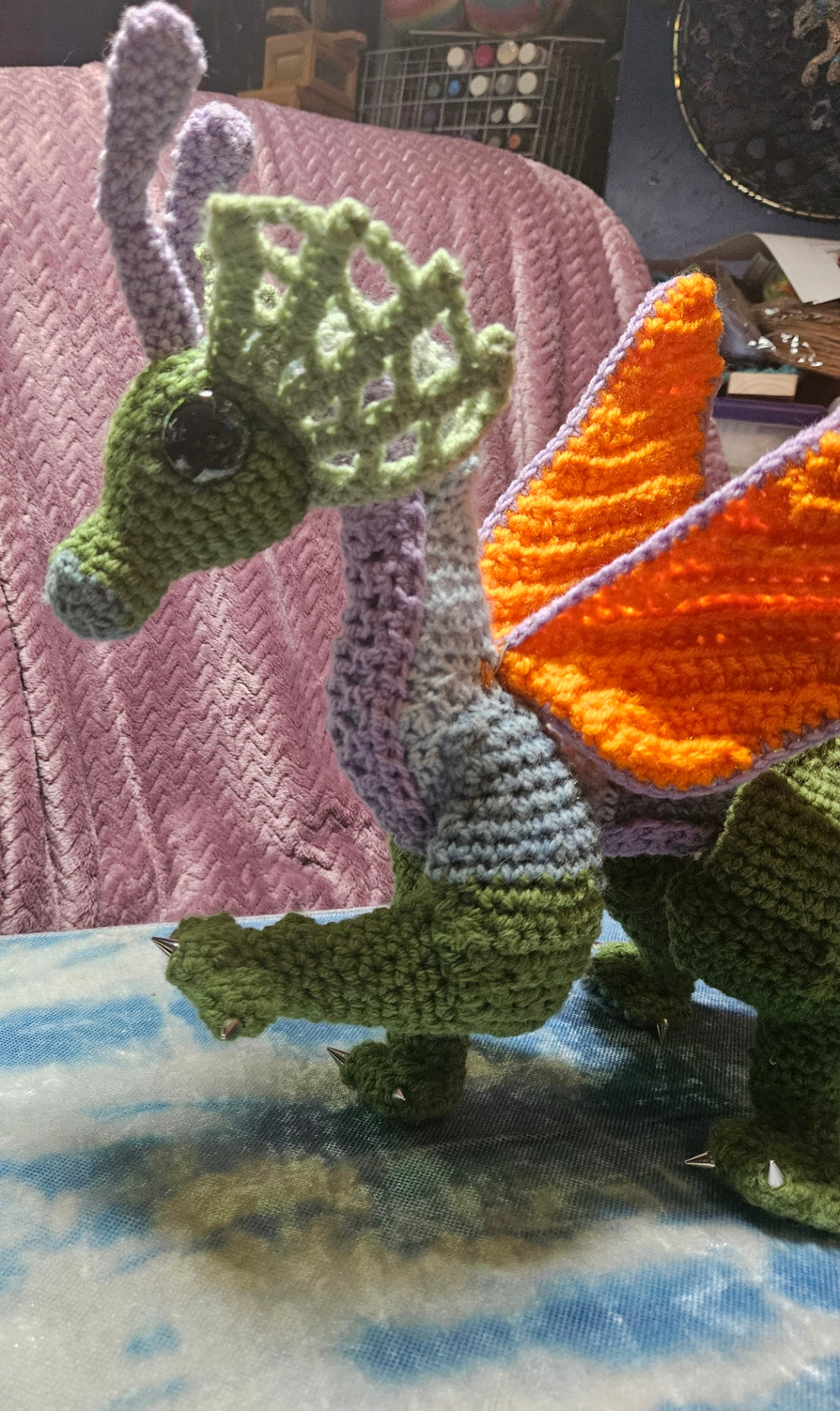 Perfect for collectors, fantasy décor, or as a unique gift for dragon enthusiasts, this Crochet Meadow Dragon will bring a touch of whimsy and wonder to any space. Adopt your own magical guardian today!