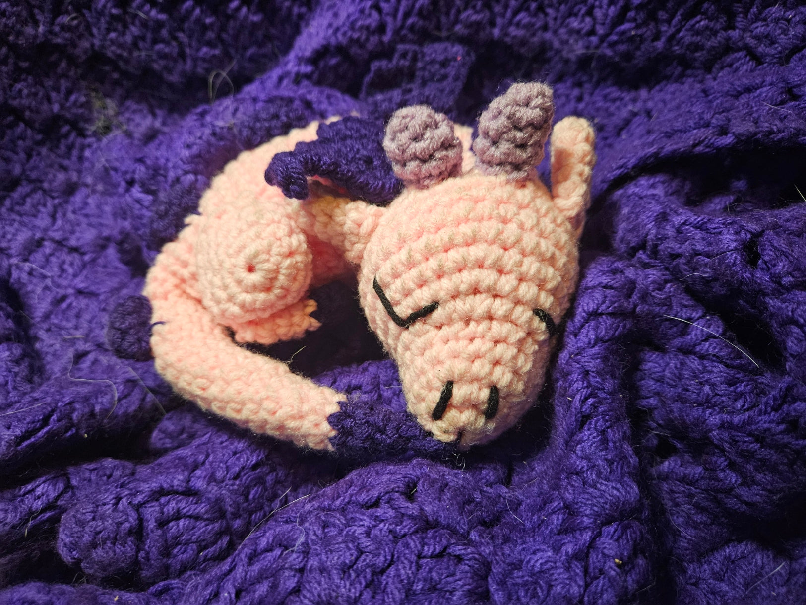 This adorable Sleeping Baby Dragon is a handcrafted crochet companion designed for comfort and charm without any wires or batteries. Its soft, plush texture makes it perfect for cozy cuddles, while its peaceful sleeping pose adds a serene touch to any space. Ready to be adopted, this little dragon brings a touch of magic and warmth to your home with no setup required. Ideal for collectors and gift-givers seeking a unique and tactile treasure.