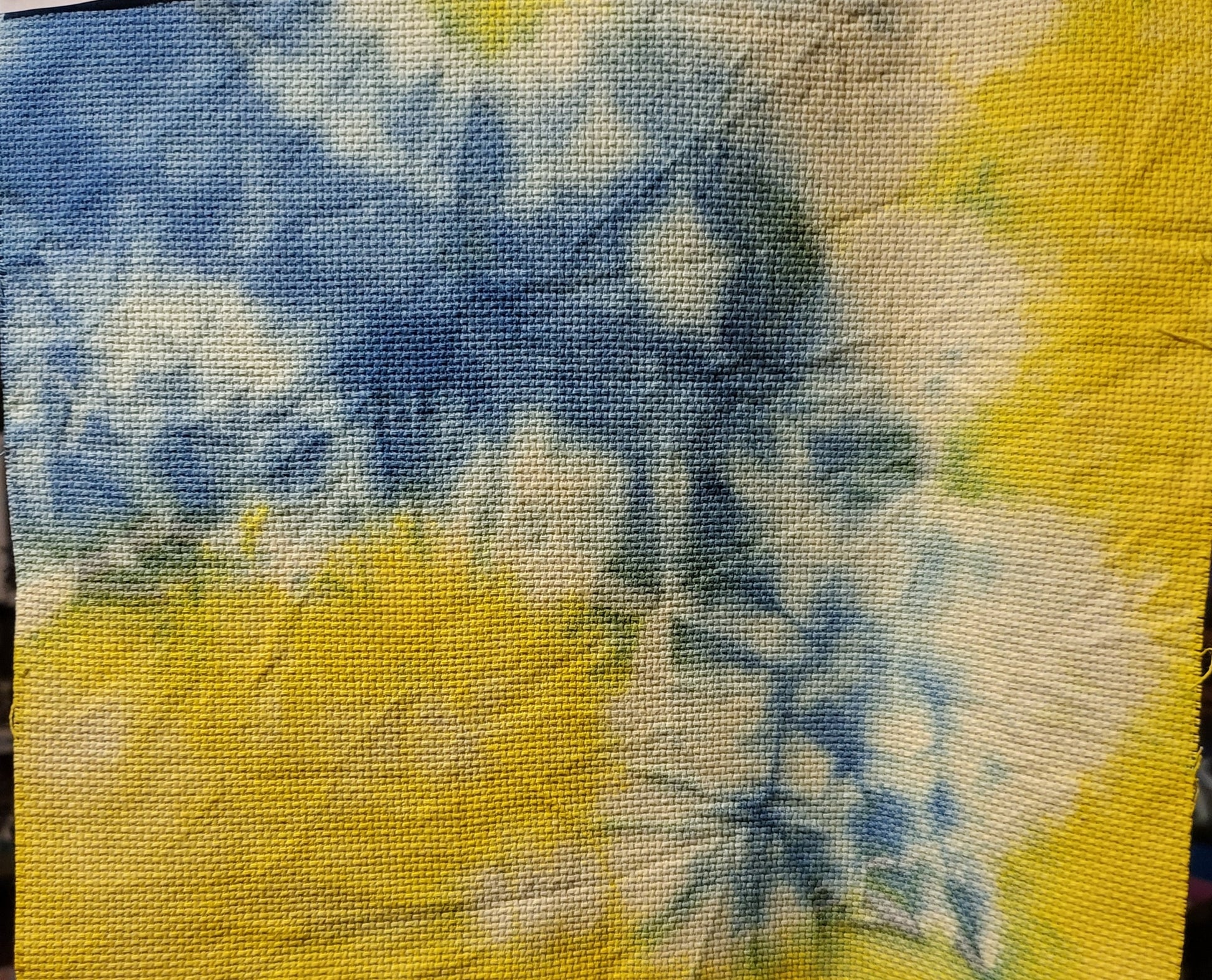 This Cloth is yellow and blue to bring a cheerful glow to your project. This is roughly what the product will look like. The nature of hand dying will provide one of a kind differences.